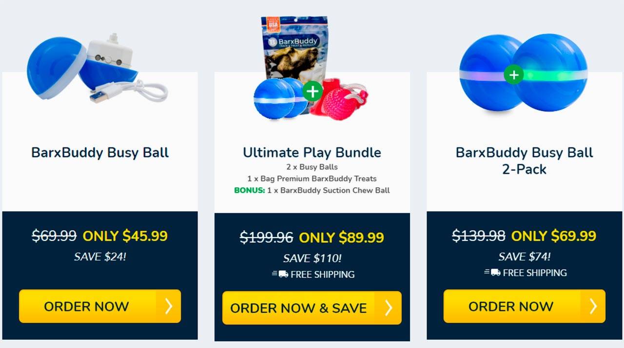 Buy BarxBuddy Busy Ball from the company’s website. Do not trust third-party sellers that can dupe you with low-quality counterfeit products. From the company’s website, one BarxBuddy Busy Ball will cost you $45.99, and you’ll be charged separately for shipping. If you buy two BarxBuddy Busy Balls, you’ll be charged $69.99. meaning you’ll save $21.99 and also enjoy free shipping. When you buy three BarxBuddy Busy Balls, the cost is only $89.99. you’ll save $47.98, and you’ll also enjoy free shipping.
