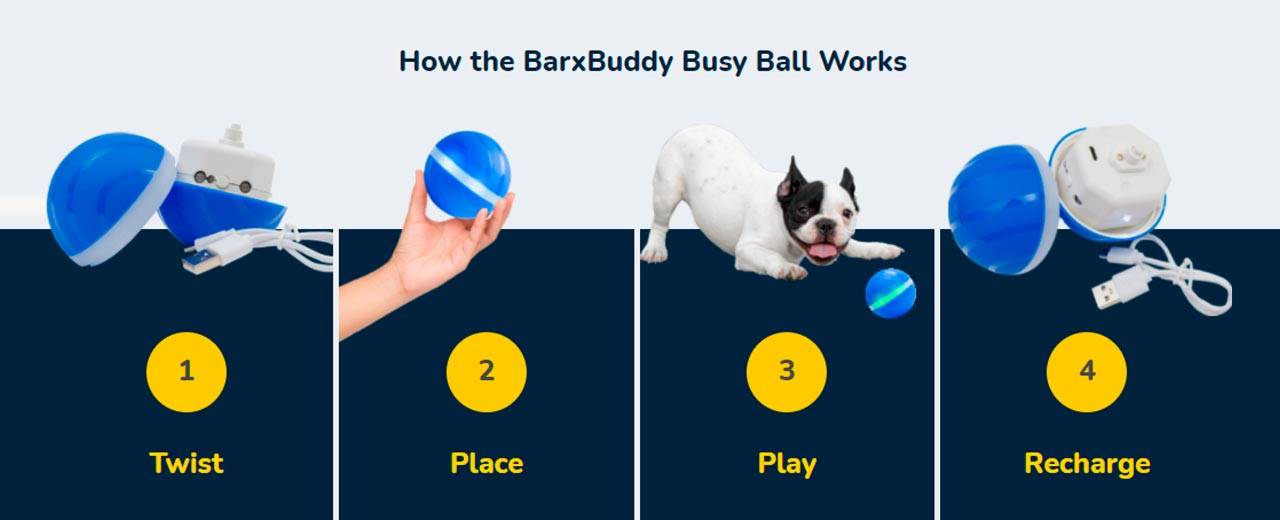 BarxBuddy BusyBall has a built-in motion sensor that will automatically activate when it is touched. That means no one needs to be at home or in the same room as the pet. Here are the working steps of this ball.