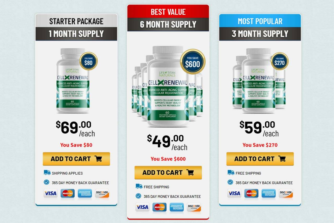 The manufacturer urges users to take advantage of the free shipping of the product now. The CellXRenewal supplement is available in three different packages. Importantly, users can find all of the packages on the official website to get a genuine product. The current prices are: