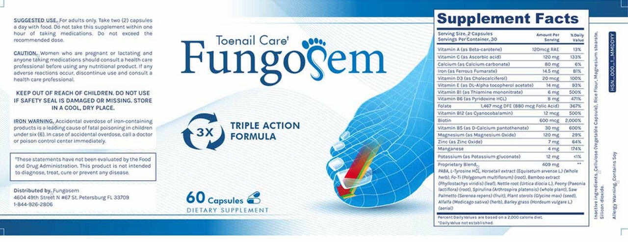 FungoSem is a toenail care supplement developed from eight natural ingredients shown to help address the problem of recurring toenail fungus. Created using natural ingredients sourced from natural and non-GMO plants, this supplement comprises a scientifically sound formula that has been shown to eliminate fungus effectively and boost innate immunity.