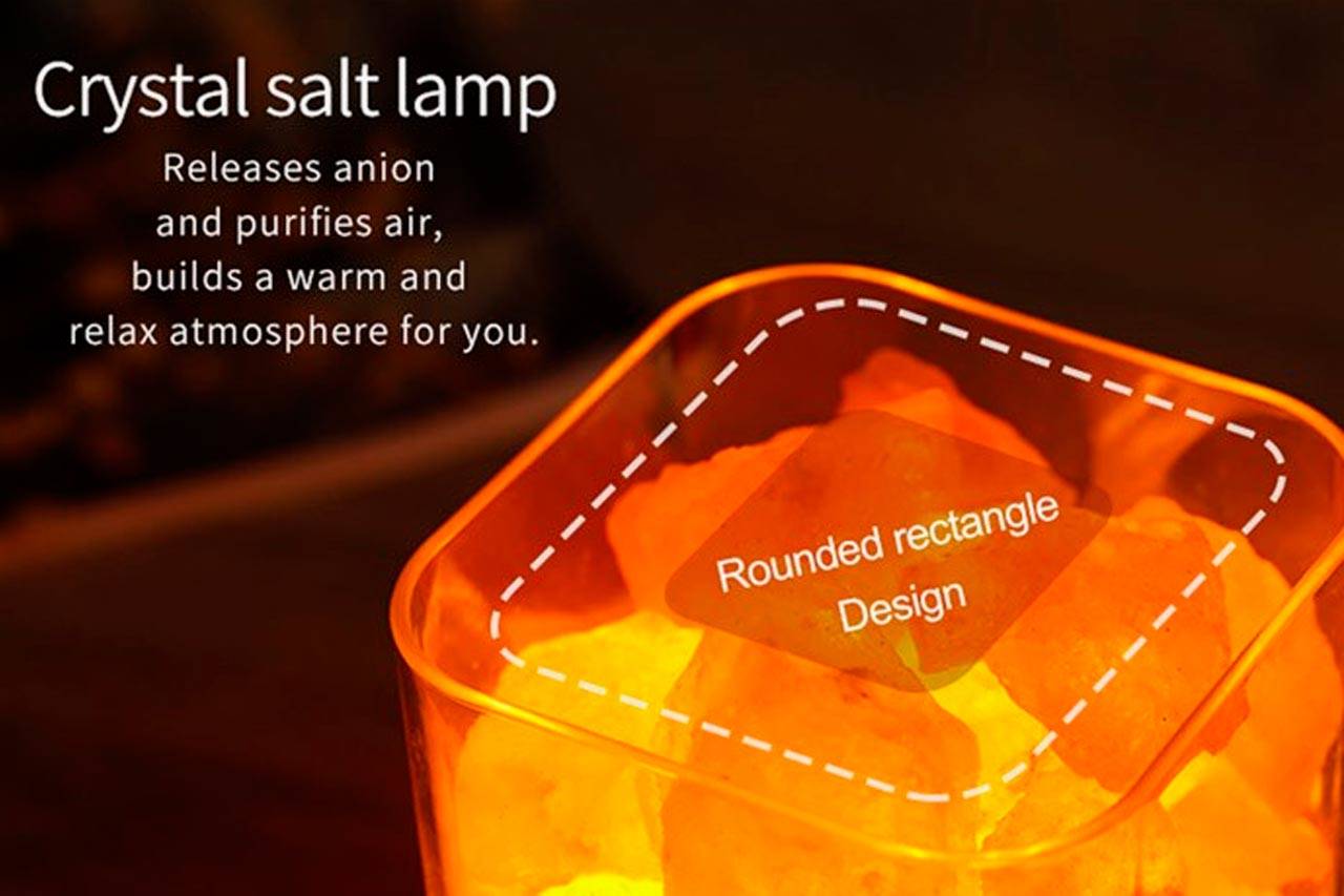 Within the rounded rectangular design of Lumebience, individuals can visually spot chunks of the supposed authentic Himalayan salts harvested directly from the Himalaya Mountains.