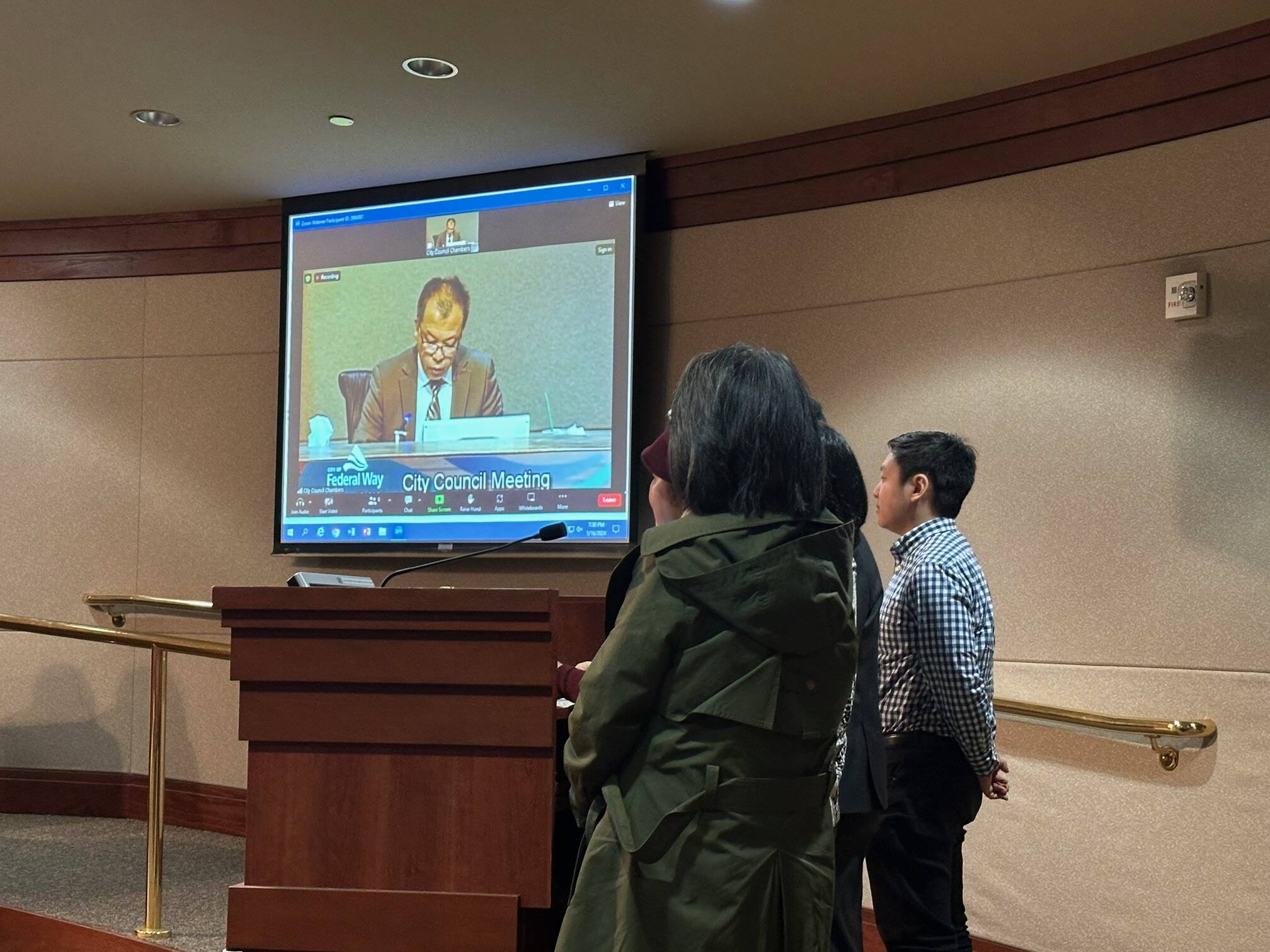 She continued this neighborly community spirit in her public comment saying: “We live in a really great community. I grew up in a really tiny little town called Yelm. At times it feels like I’m back in a tiny town even though we’re a city over of over 100,000 people, so if we can continue to grow smaller as we grow bigger and not lose that connectivity with our neighbors and with our city leaders, I think we’ll be okay Federal Way!”