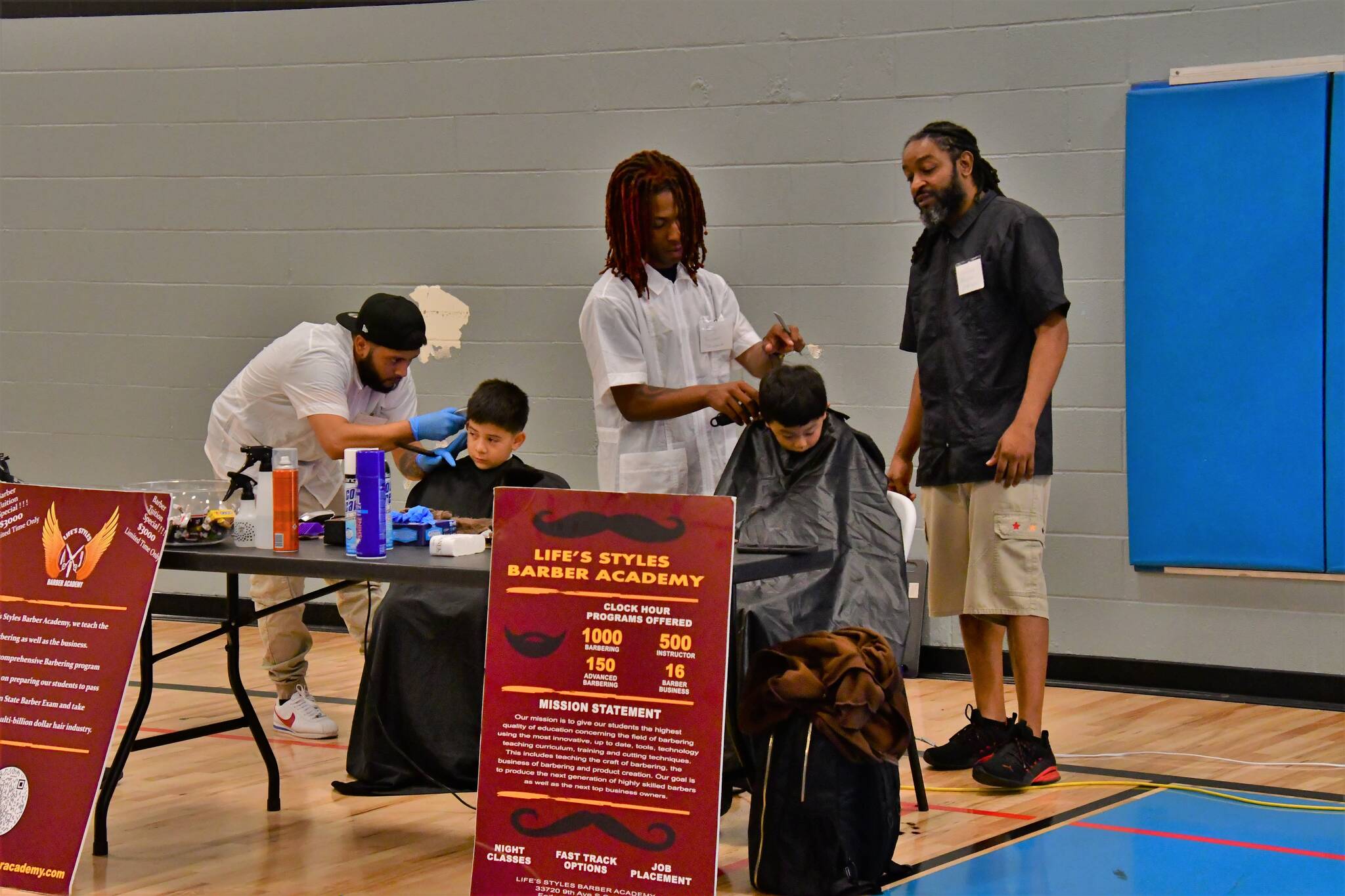 Several community sponsors helped provide back-to-school necessities for youth in Federal Way, such as backpacks filled with school supplies and New Balance running shoes. Local barbers Juan Deluna and Kyii McCreary from Life’s Styles Barber Academy also provided free haircuts for youth. Attendees enjoyed Kona-shaved ice, hamburgers, hot dogs, pizza and fruit.