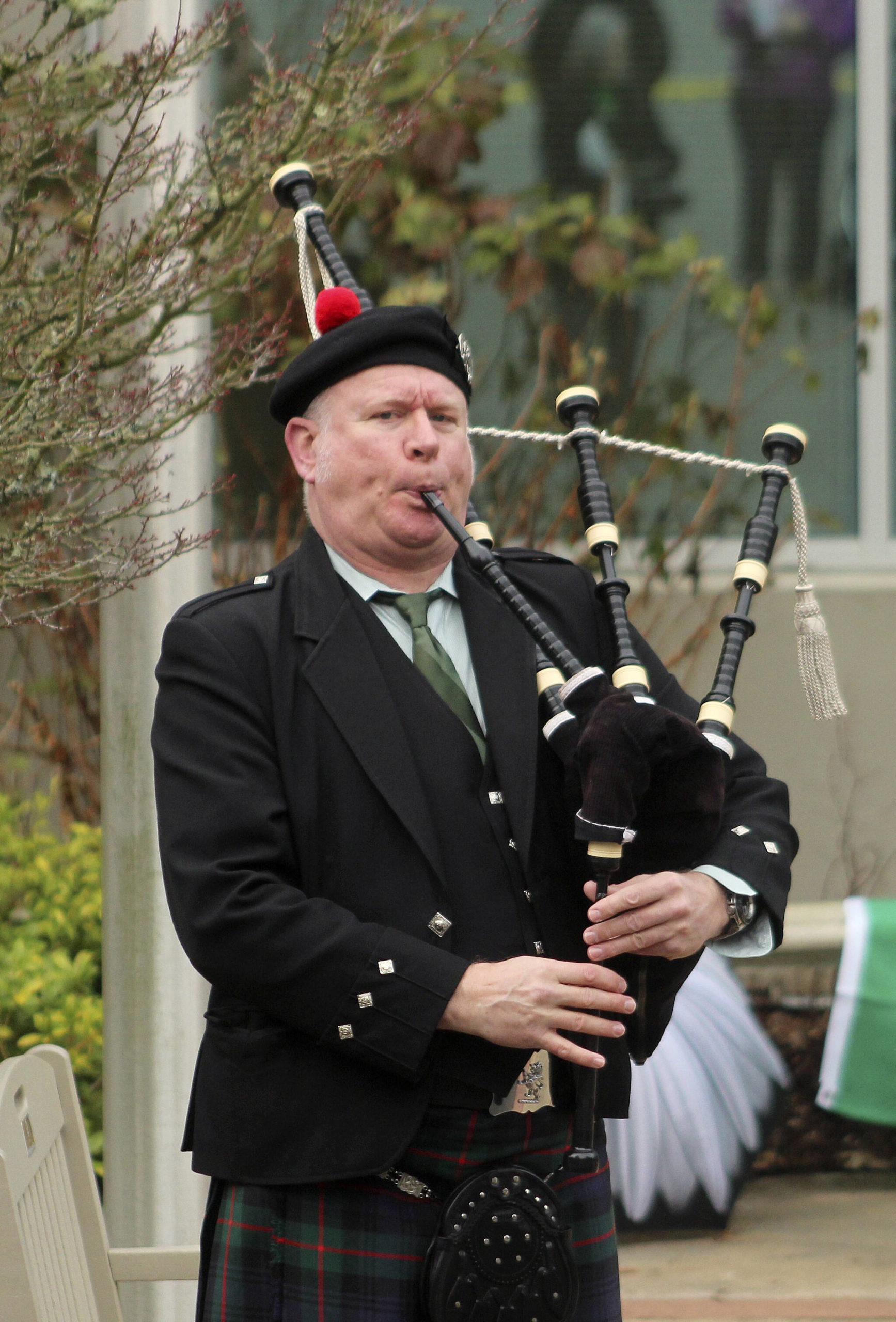 Photos by Olivia Sullivan/the Mirror Seattle’s Bagpiper Neil Hubbard performs outside Federal Way City Hall on March 17.