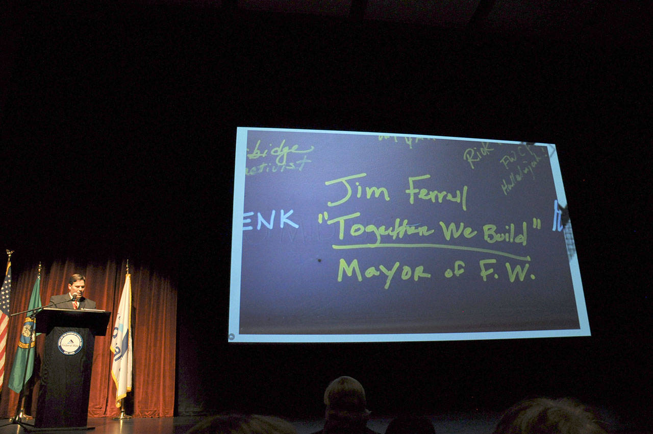 When Federal Mayor Jim Ferrell signed the ceremonial “topping off” beam for the Federal Way Performing Arts and Event Center in August 2016, he wrote “together we build” below his name.