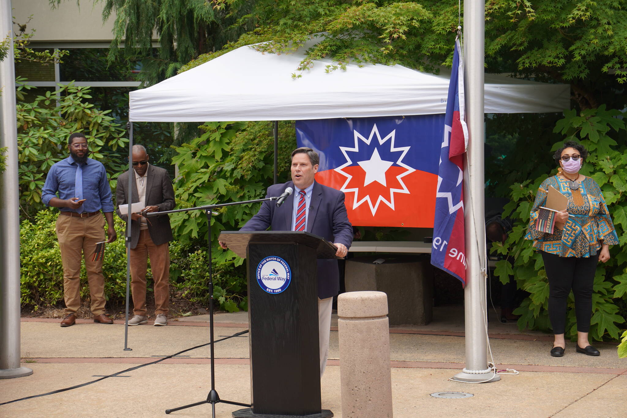 On June 18, elected officials and members of the Federal Way community gathered in front of City Hall to celebrate Juneteenth with a flag raising ceremony.