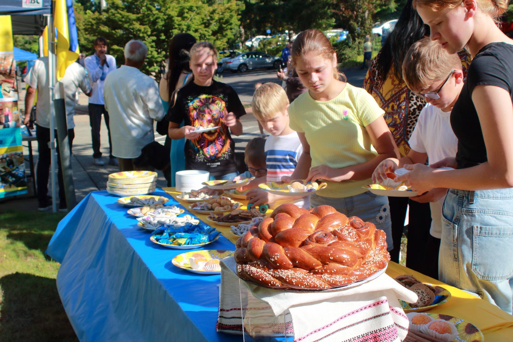 After the official speakers and raising of the flag, community members stuck around to enjoy Ukrainian snacks and coffee as well as a few more song performances by young people.