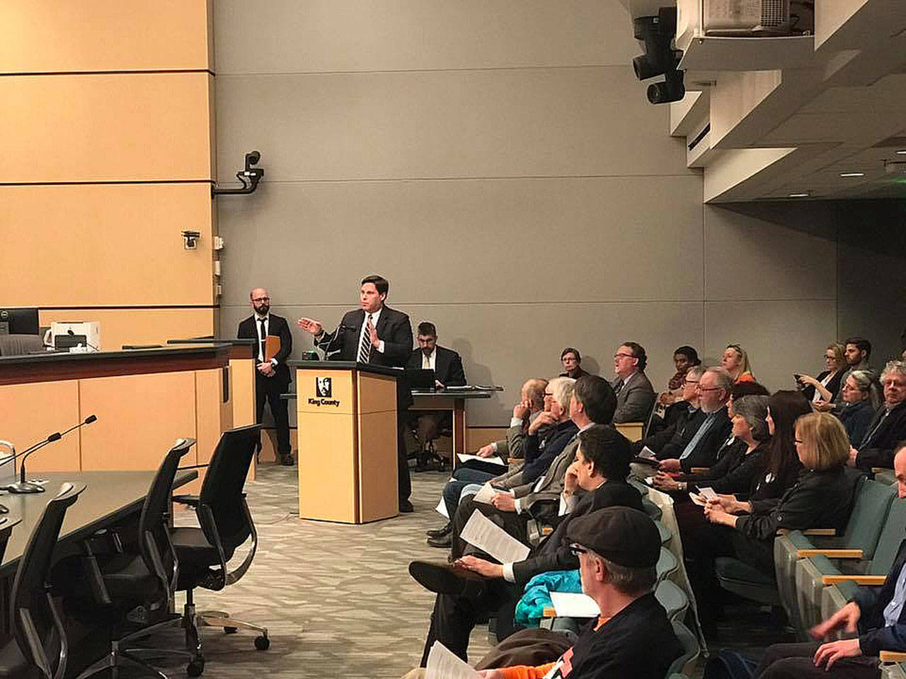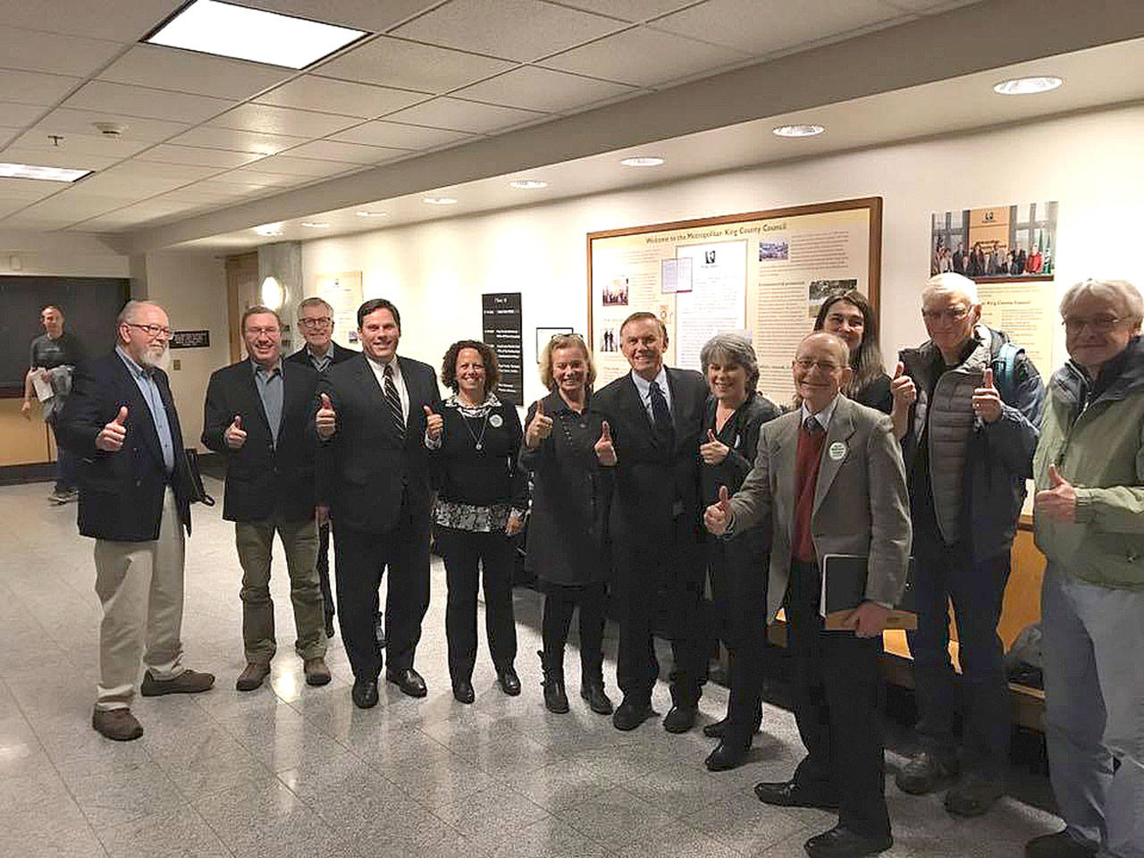 Mayor Jim Ferrell and members of the Save the Weyerhaeuser Campus group spoke to members of the King County Council on Monday in support of funds to preserve the west shore of North Lake. Legislation sponsored by King County Councilman Pete von Reichbauer and Surface Water Management funds authorized by the Mayor will support these lands in the future. Photos courtesy of the city of Federal Way