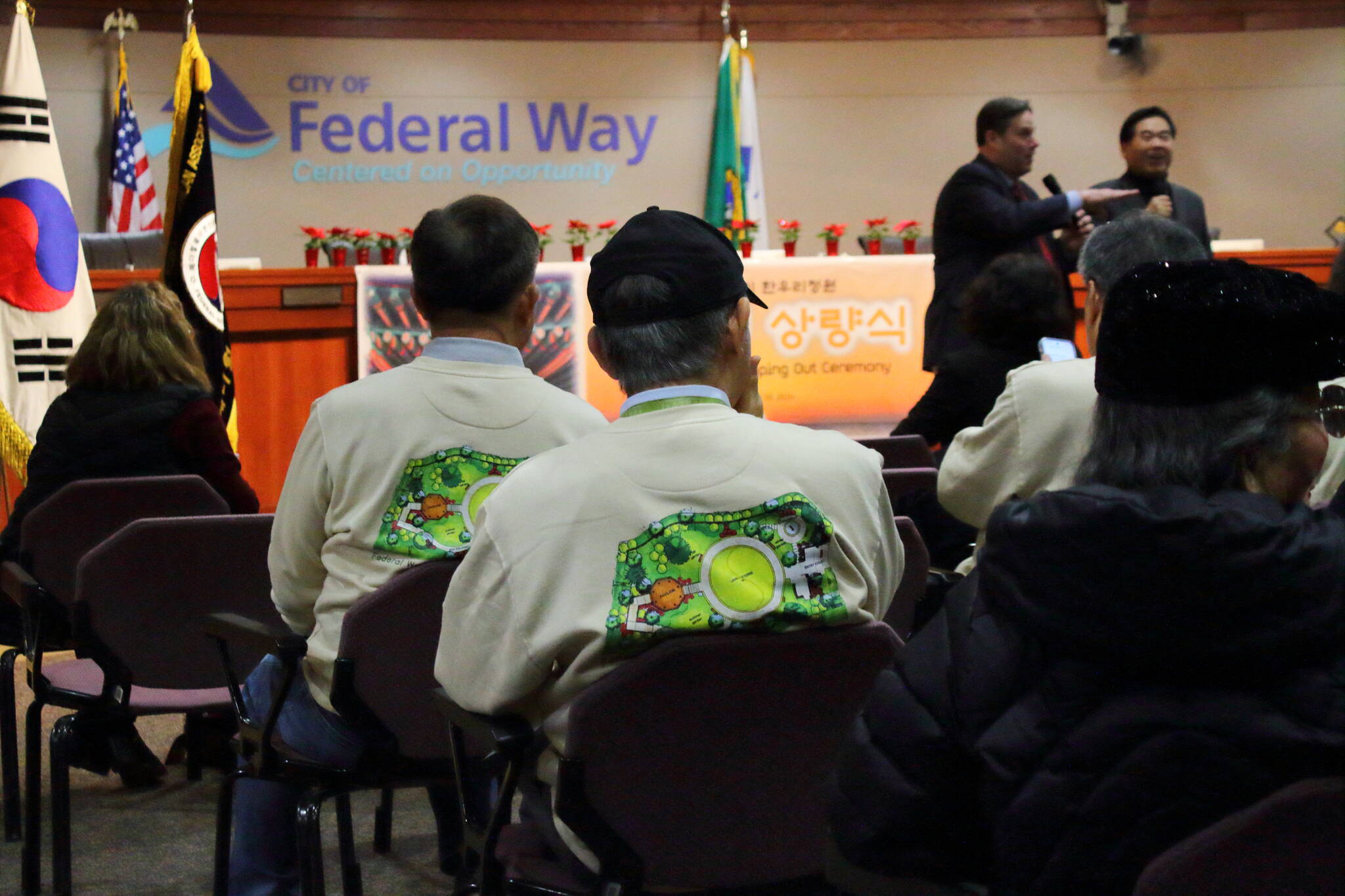 The Korean community of Federal Way celebrated the construction of a traditional Korean pavilion called Palgakjeong and a traditional Korean gate for the Hanwoori Garden — and also honored young people at their quarterly event on Dec. 19 at City Hall.