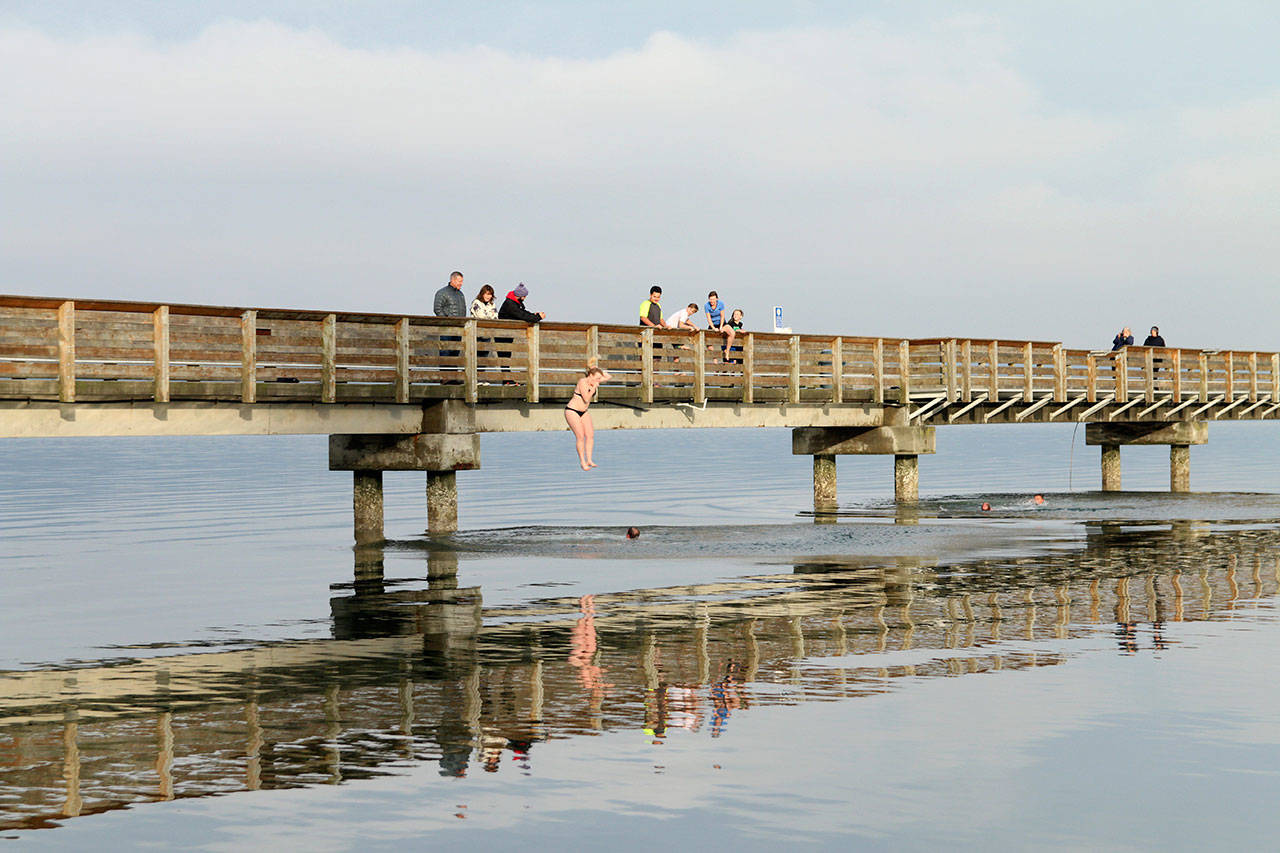 Residents of Northeast Tacoma and Browns Point gathered at Dash Point pier for the community’s annual plunge.