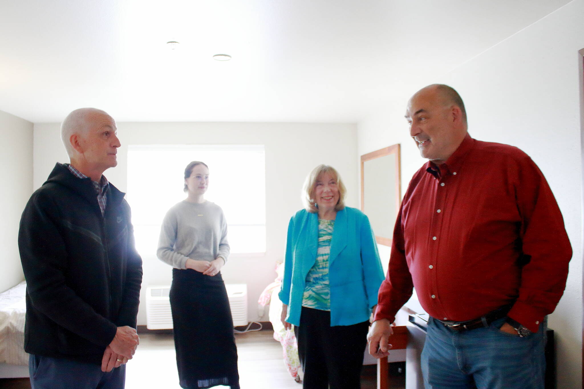 Rep. Smith was led on a tour of the family center, which has 31 rooms and currently provides temporary homes to 125 people. Located at 1505 S. 328th Street, the center also features a common room on each floor with a shared kitchen, eating space, TV and activity area.