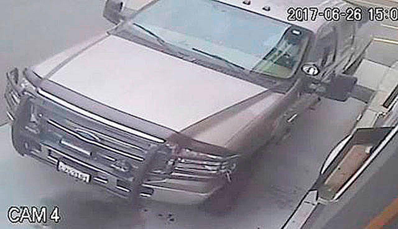 The truck has been identified as a stolen tan- or gold-colored 2005 Ford F-350 crew cab with a California license plate of 42431B1. The truck has distinguishing characteristics that include a lift kit, a dark-colored tailgate, a front brush guard and a spotlight at the driver’s side window. The same truck has been described in each robbery.