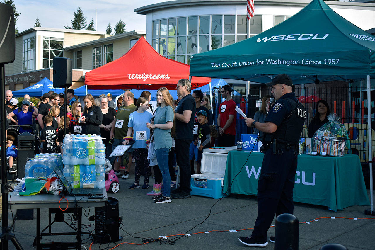 Dozens of community members joined local law enforcement to participate in the annual Run with a Cop 5K to raise money for Washington Special Olympics on Saturday at the Federal Way Community Center.