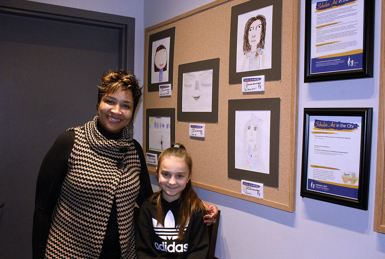 Dr. Tammy Campbell and Victoria pose with artwork from Lakeland Elementary. Olivia Sullivan/staff photo