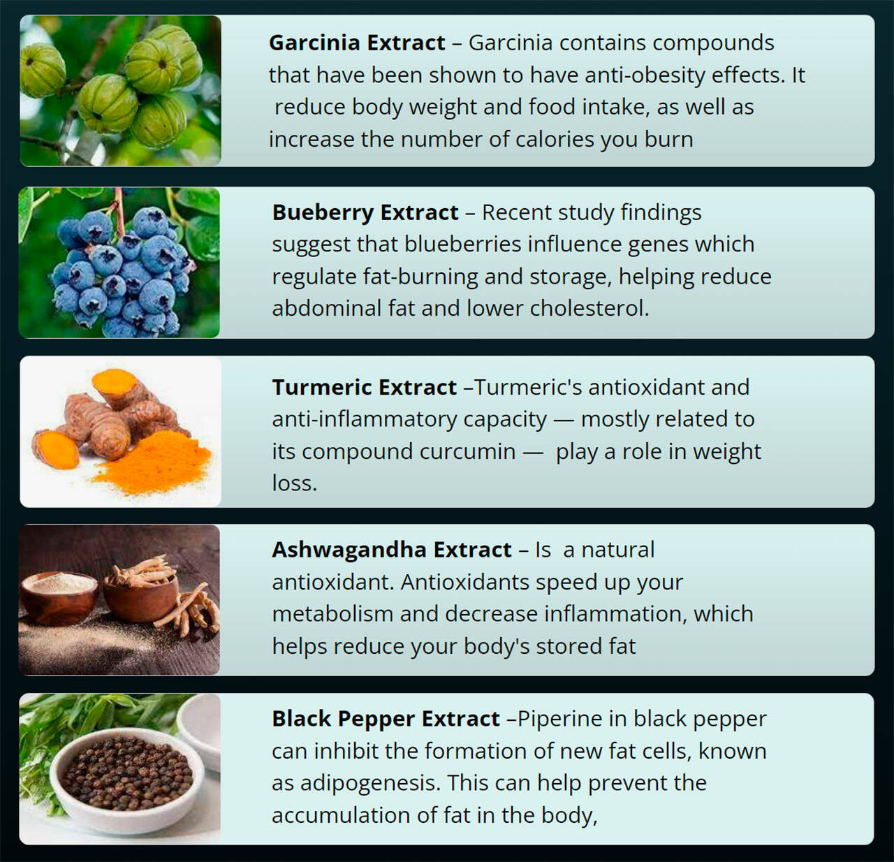This extract provides the body with various antioxidants that scavenge free radicals from blood and tissues. It reduces metabolic waste, allowing your body to tap the lipolysis switch and improve fat loss results by initiating lipolysis.