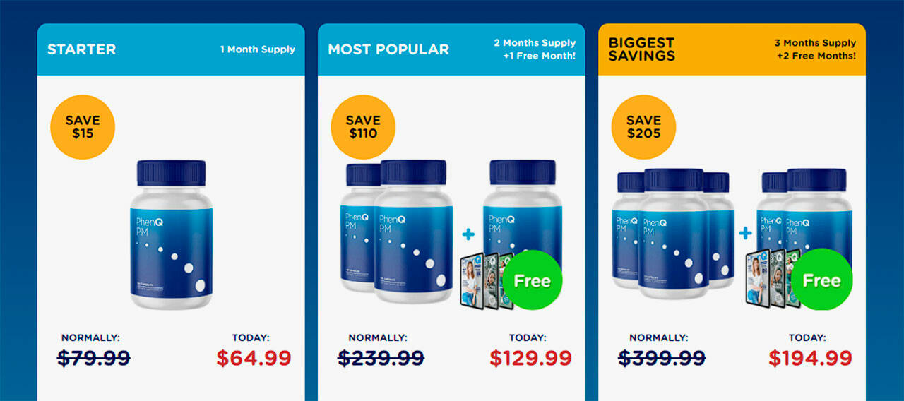 PhenQ PM is available in three pricing options. These include: