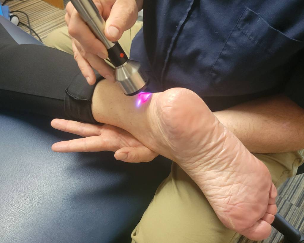 - Cold Laser Therapy – using a wave-length that stimulates mitochondria to reduce inflammation. “This treatment is painless, and when used early in the treatment of motor vehicle patients, it can reduce their pain in half the time,” Dr. Ball says. “It is also a treatment widely utilized with sports injuries incurred by Olympic athletes.”