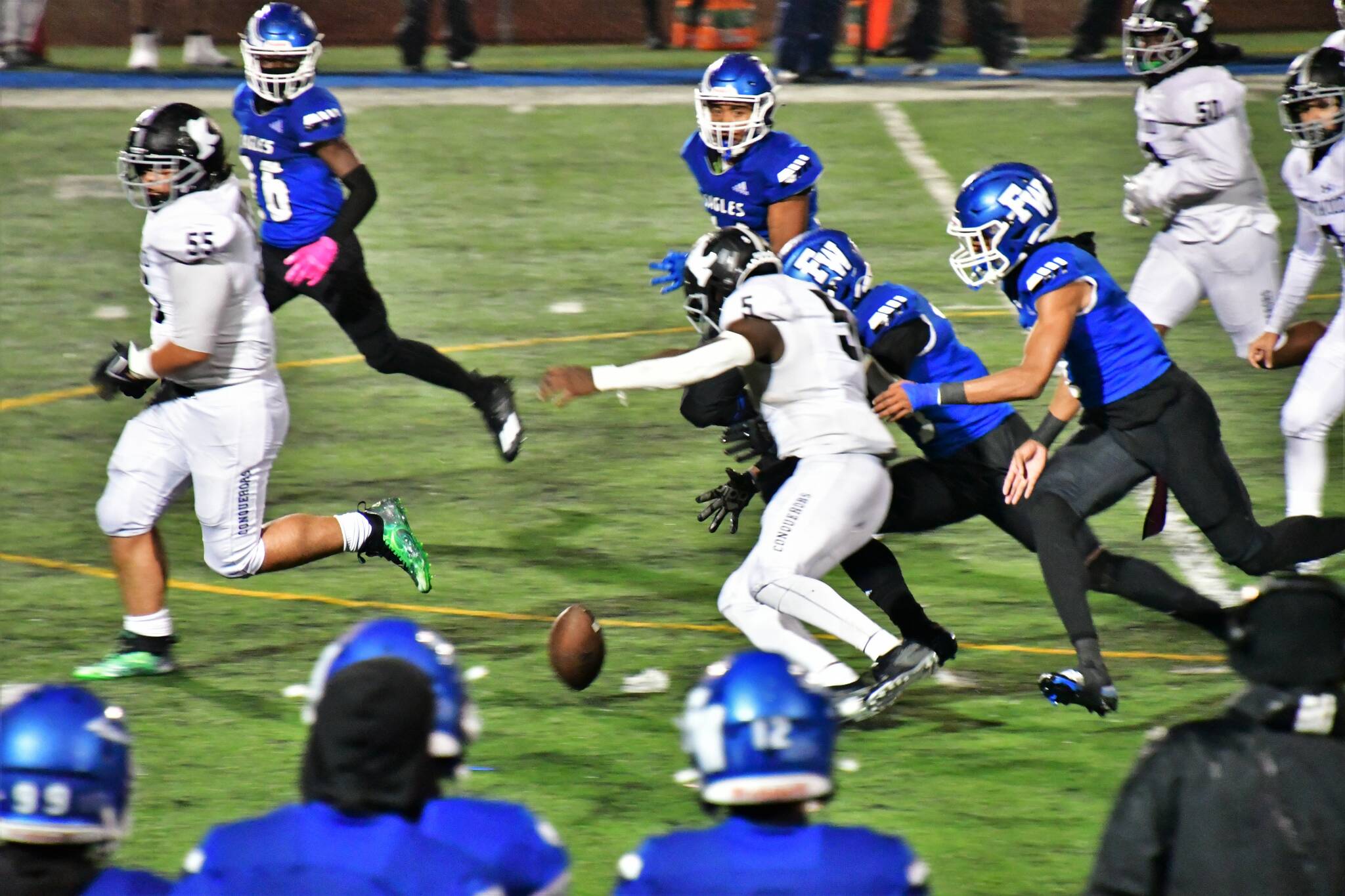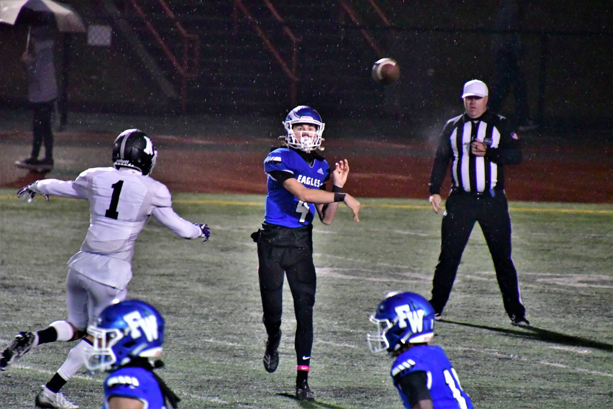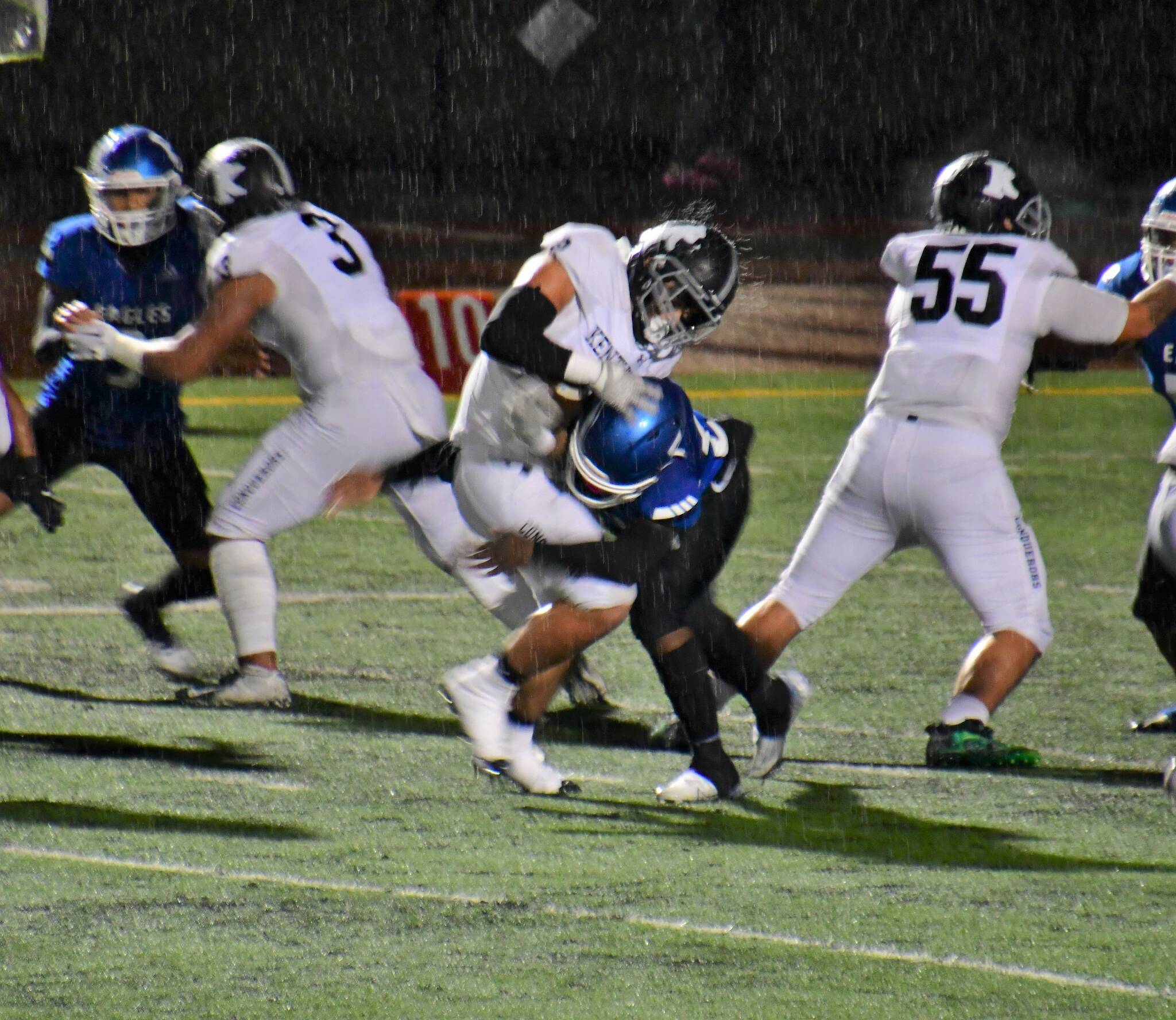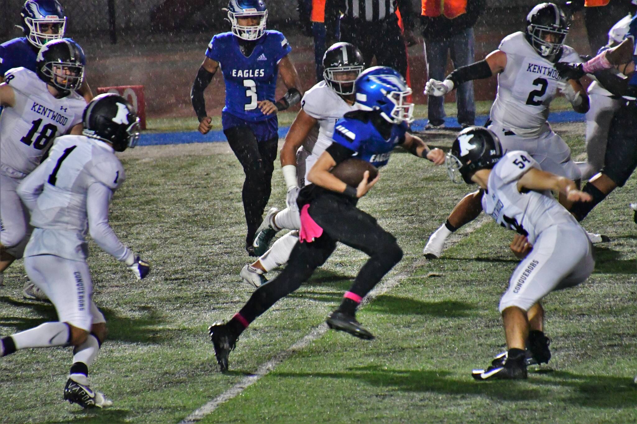 Federal Way Eagles football team beat the Kentwood Conquerors 48-20 in a wet Friday night game on Oct. 21 at Federal Way Memorial Stadium. This game marked the final time the Eagles will play a regular season game before the stadium is replaced.