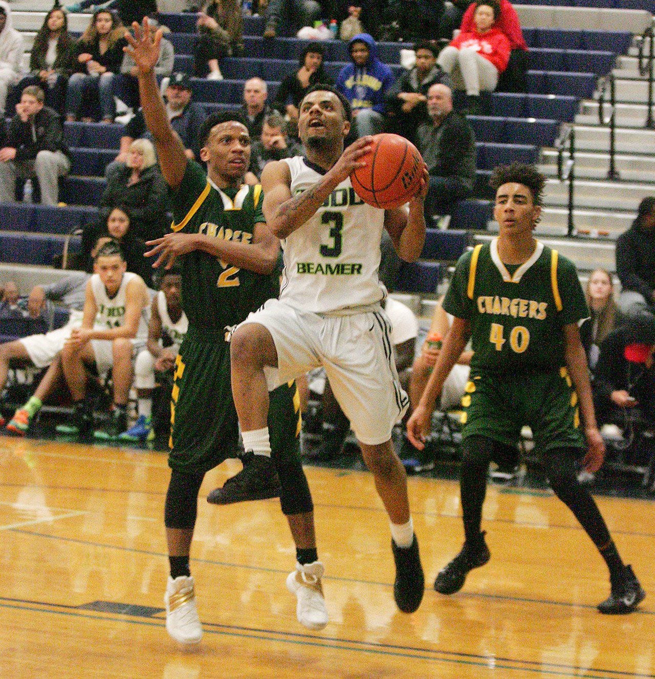 After Kentwood tied Federal Way at 53, Minnis put the Conks on his back and took over the game. Two minutes after Huerta’s three, Minnis dribbled the ball up the left side of the floor with Stephens right on his hip.