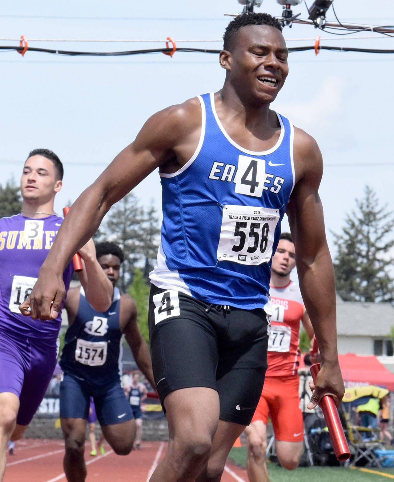Eubanks joined senior leadoff Eric Jones, sophomore Anthony Frazier and junior Treyvon Davis to blister the oval in a school-record 41.9 seconds at the 4A track and field championships at Tacoma’s Mount Tahoma High School on Saturday.