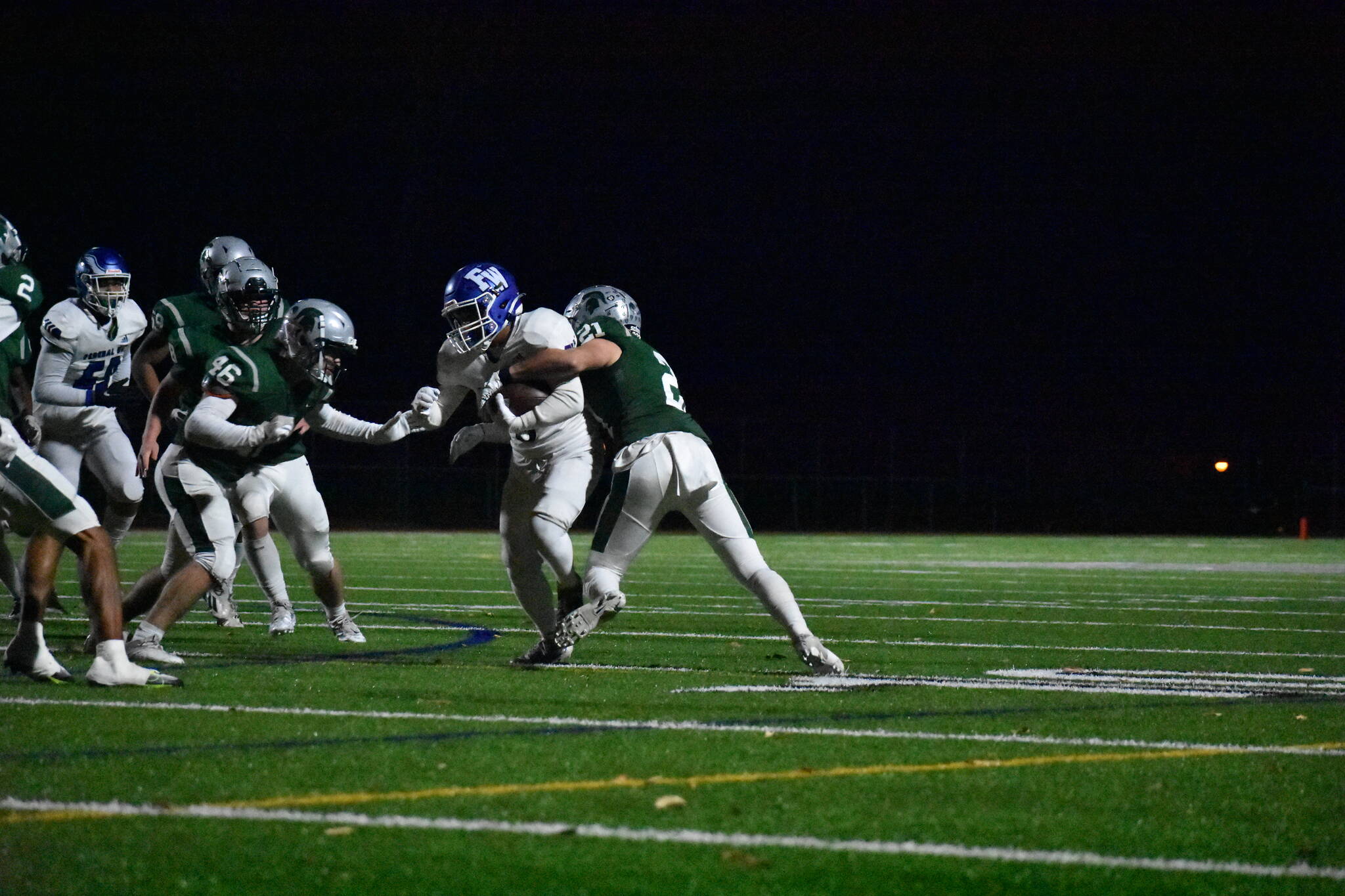 In the second half, Skyline scored a touchdown on their first possession, extending the lead to 26-7. Federal Way responded with a touchdown of their own, two trick plays including a backward pass to wide receiver who found Jaylon Jenkins and closed the gap. The two-point conversion was ran in by senior Maki Piper, and the score was 25-16.