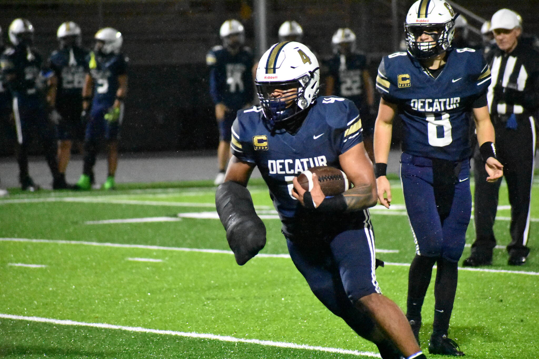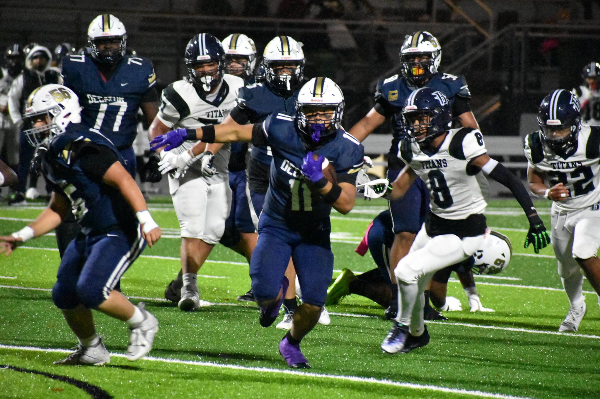 On a wet-cold and rainy night with Seahawks legend Jim Zorn in attendance, Decatur High School trampled Todd Beamer High School, 54-0, to cap off their first ever undefeated season on the gridiron on Oct. 31.