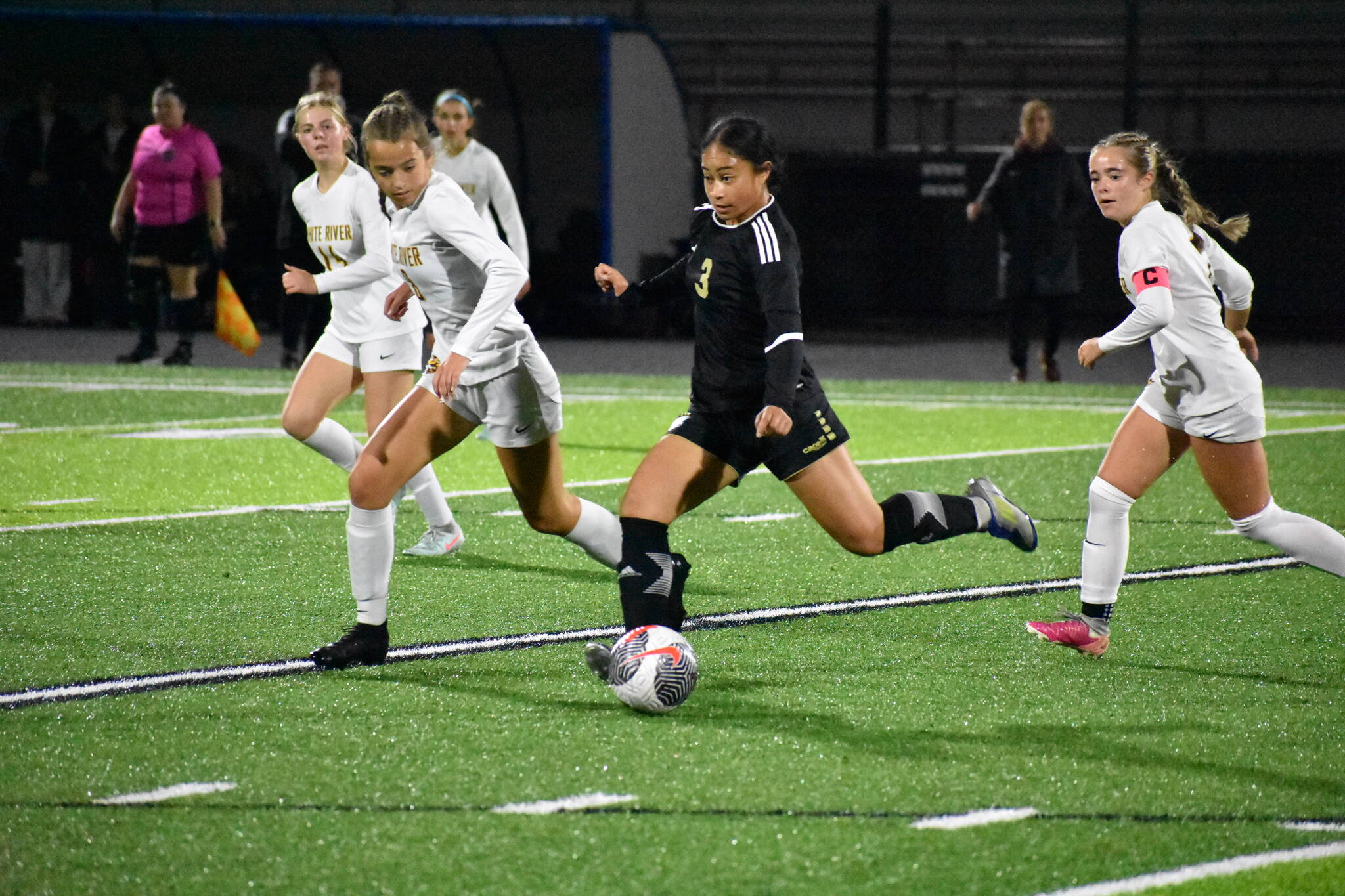 Senior midfielder Riley Soule kept play alive and lobbed a shot into the back of the net to give White River a favorable lead in the 54th minute.