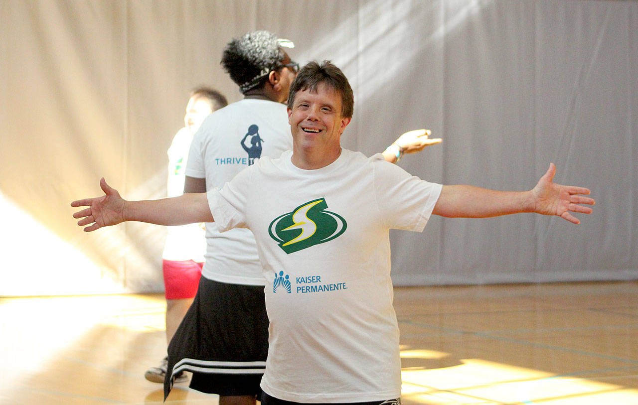 At the July 8 event, more than 30 local Special Olympics athletes hit the courts at the Federal Way Community Center to practice with Seattle Storm guard Blake Dietrick and volunteers from the Storm, Bank of America and Kaiser Permanente.