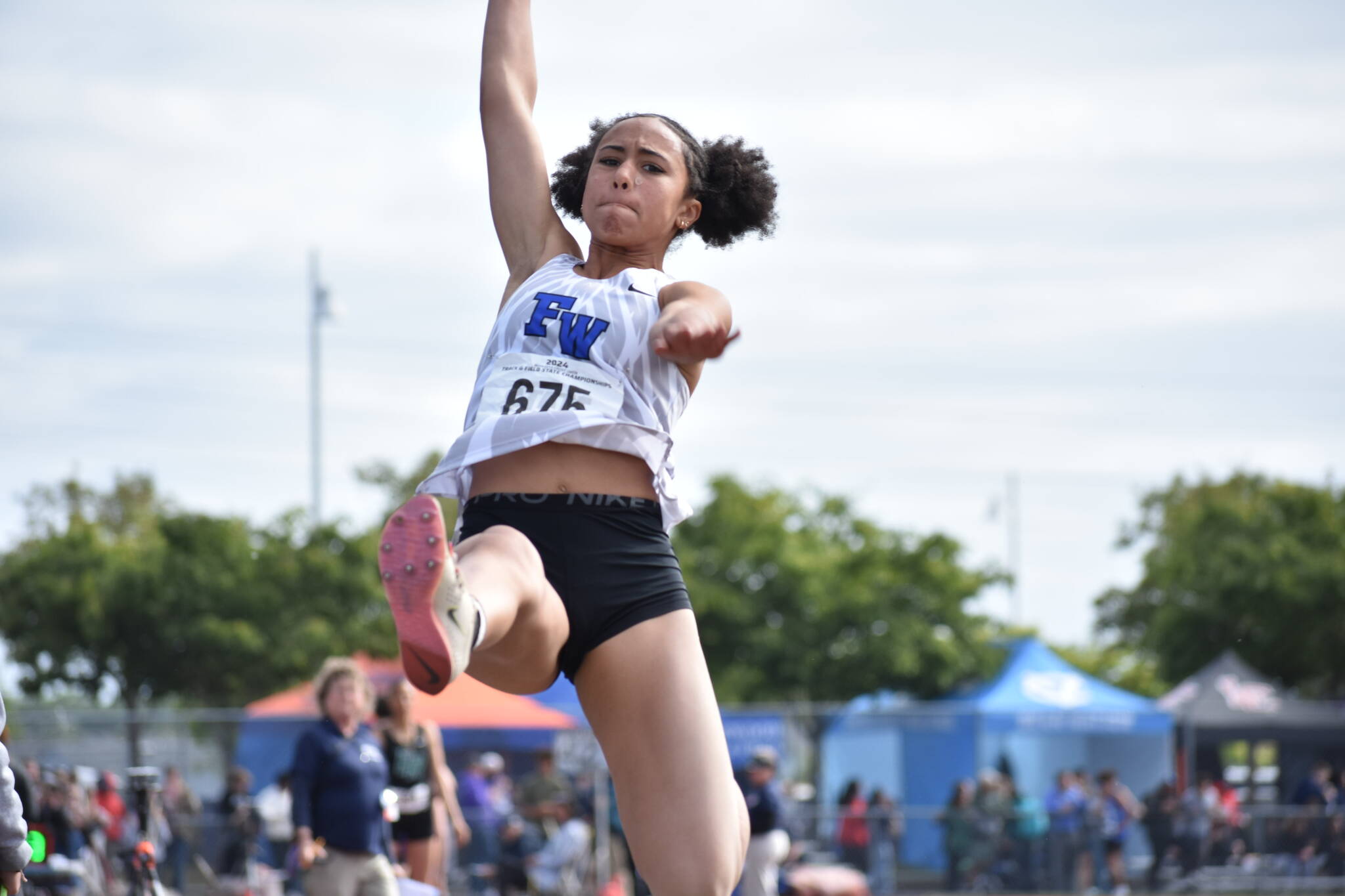 Cassie Atkins shined bright in her final track meet in the Federal Way Eagles blue and white. The Federal Way senior took third in the 200-meter sprint and held her crown in the long jump and triple jump.