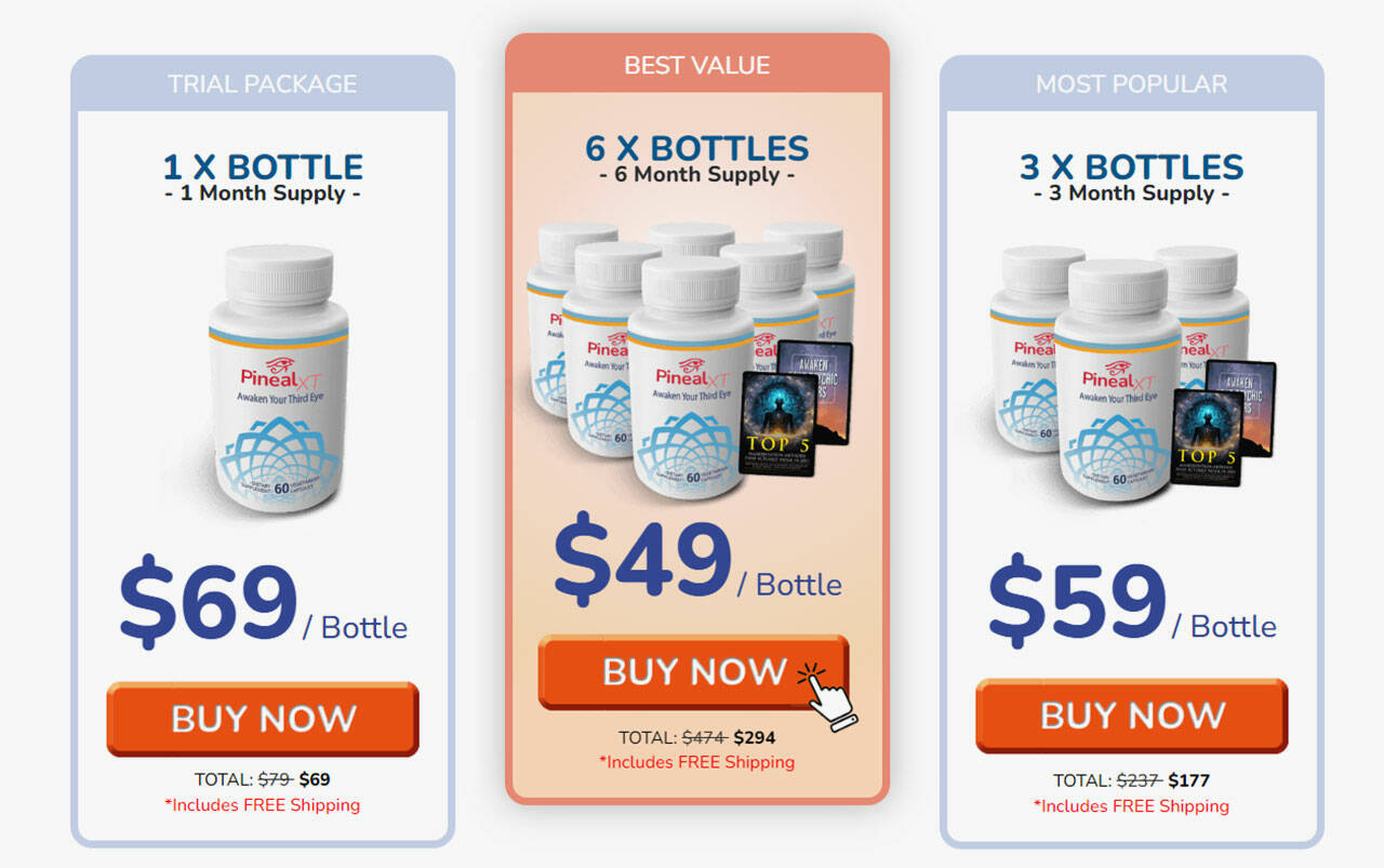 If you want unlimited wealth, happiness, and love, consider getting your Pineal XT today. It contains ingredients that will cleanse your pineal gland, boosting your ability to attract abundance and anything you want. The formula is easy to use and suitable for men and women alike. Here is how its pricing breaks down: