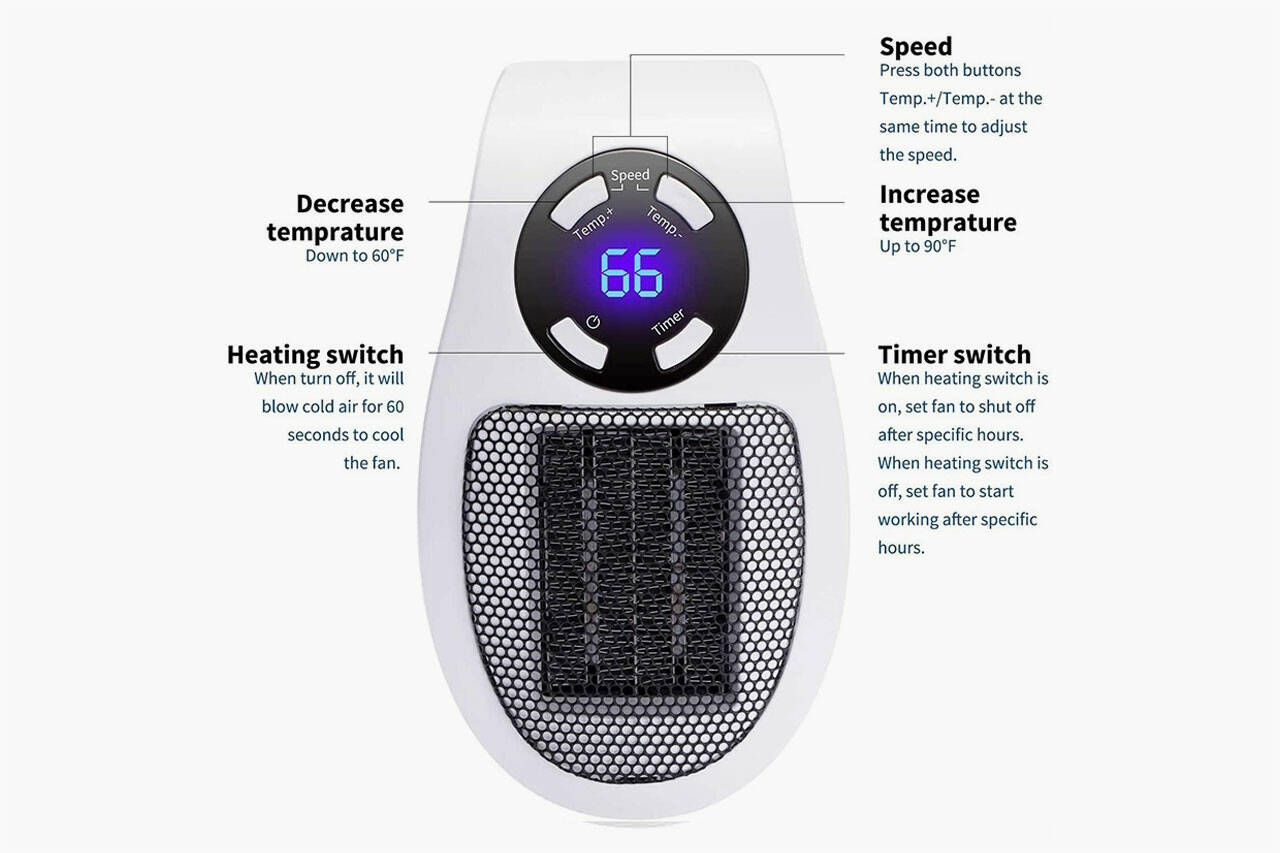 The Toasty Heater is a compact yet perfect solution for swiftly and effectively warming any cold areas in your home. This heater minimizes energy consumption by harnessing its innovative design to extract heat from wall outlets. Its integrated fan ensures efficient heat distribution throughout the room, promising rapid and comforting warmth.