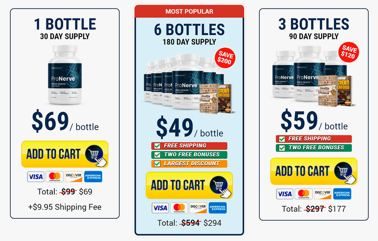 Customers can take advantage of discounts by purchasing multiple bottles simultaneously, especially the 3 and 6-bottle packages, including free shipping and bonuses. For the best experience and to ensure product authenticity, it’s advisable to avoid third-party marketplaces and only purchase ProNerve6 directly from the official website.
