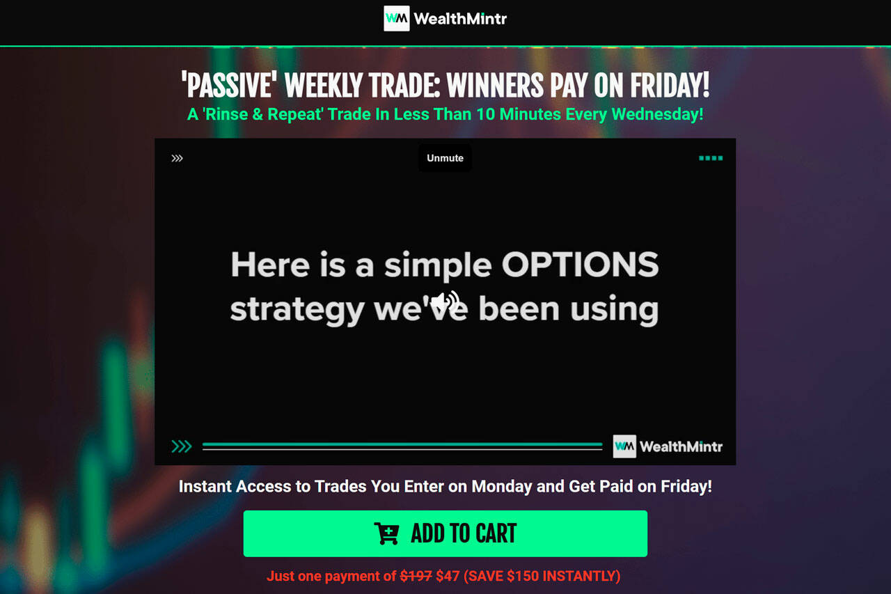 WealthMintr’s Options Formula for Weekly Income normally costs $197, but for a limited time, individuals can access it for a one-time price of $47. Additionally, each purchase is protected by a 30-day money-back guarantee.